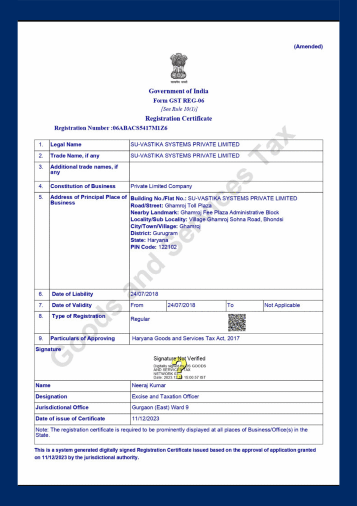 Goods and Services Tax Certificate
